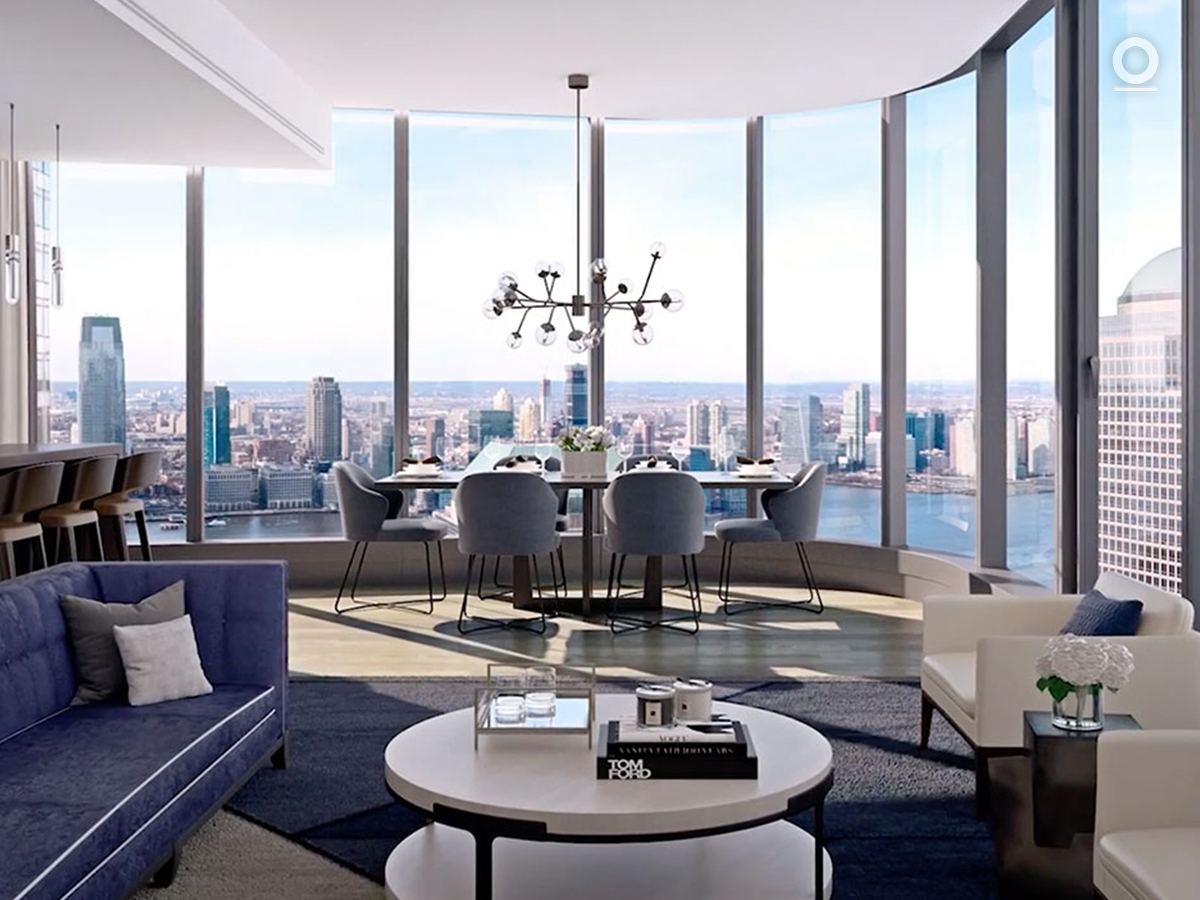 125 Greenwich Street offers an exclusive chance to see the city from a new perspective: a private sanctuary in the sky. Designed by world-renowned architect Rafael Viñoly and featuring interiors by MAWD, 125 Greenwich utilizes its top three floors, totaling 15,000 square feet, as an amenity space. Each residence is awash with a custom-designed palette to reflect the buyers taste: Aqua, Terra, or Stratus — their subtle, complementary hues borrowed directly from the surrounding neighborhood’s elements. Continuous, full-height, floor-to-ceiling curtain walls provide maximum visibility and clarity, while custom kitchens and baths are replete with bespoke surfaces and fittings carefully selected for each palette, along with expanses of Calacatta Covelano marble, stone, and polished nickel.