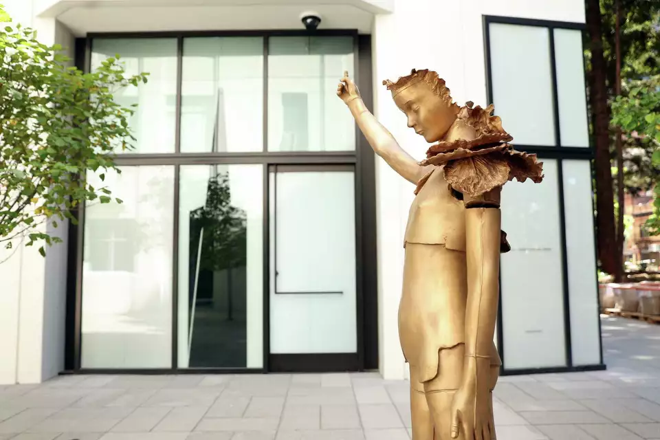 “Les Lalanne at Transamerica Redwood Park” is co-organized with Kasmin Gallery in New York and will feature sculptures ranging from whimsical animals to fantastical human figures and fragments of bodies. Their works, which were co-created together but are separate pieces of art, are often linked to movements like Art Nouveau, because of Claude Lalanne’s botanical themes, and surrealism, due to Francois-Xavier Lalanne’s imaginative animals. The show’s presentation amid the old trees and new landscaping of the park is meant to evoke the artists’ studio and garden near the Fontainebleau forest in France.