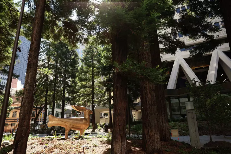 “Olympe” by French artist Claude Lalanne in Transamerica Redwood Park at the Transamerica Pyramid. The work is on view to the public in Pyramid Arts’ opening exhibition “Les Lalannes.”