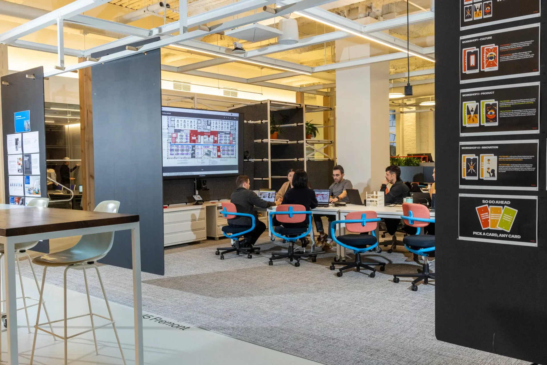Now, the firm’s 250 employees all work on the large second floor of the Mills Building, making collaboration easier, and they have close-up views of the street life outside. The windows open, allowing fresh air to enter.