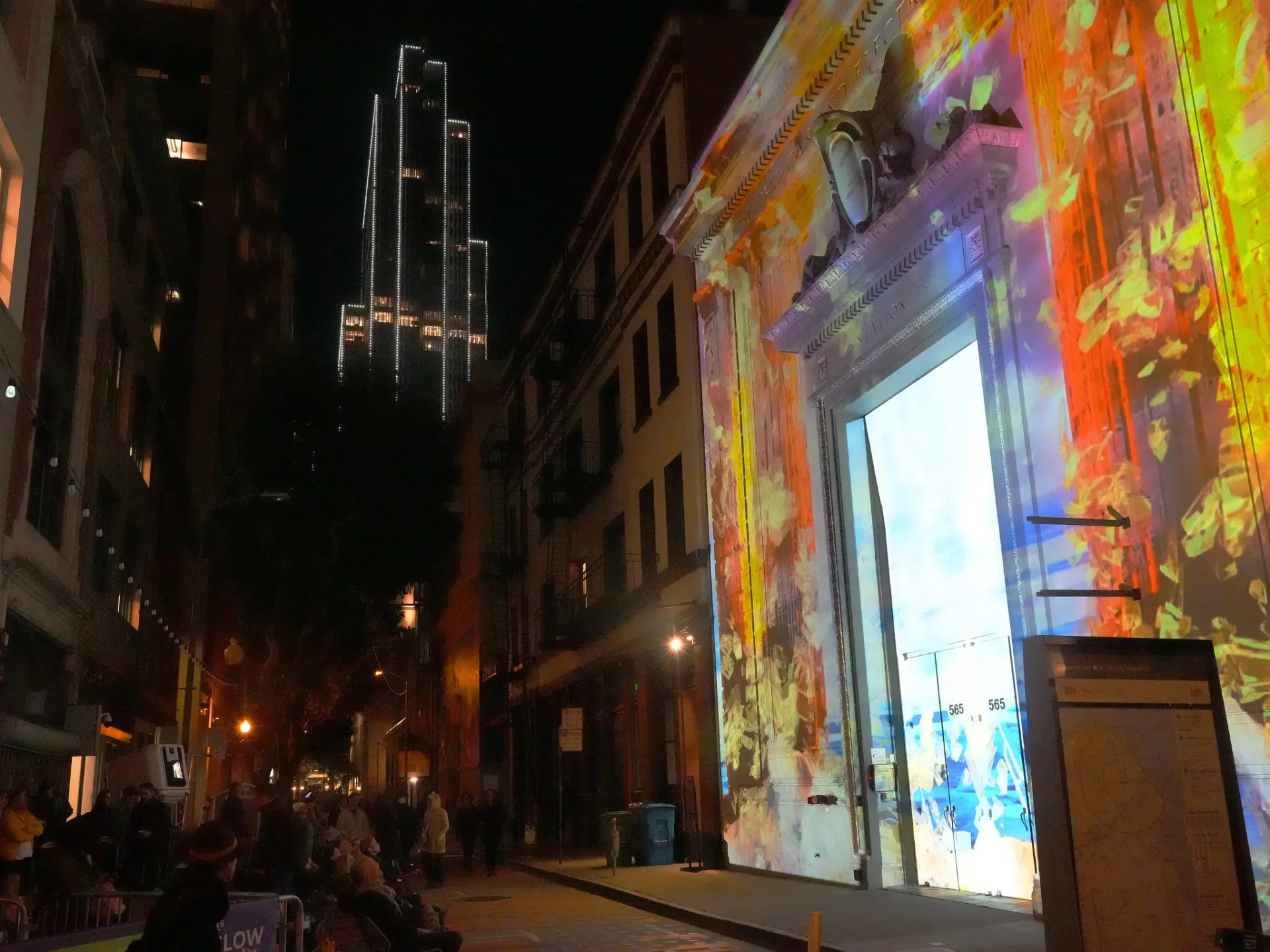 On a recent night, dozens of people sat in lawn chairs watching a trippy, winter-themed light show that was projected onto the substation facade.
